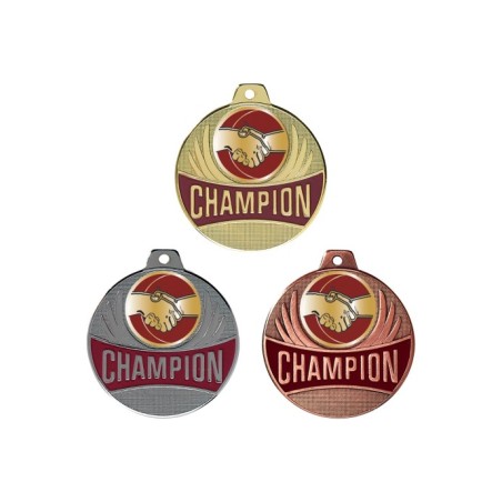 Médaille avec CHAMPION en lettre d'or sur fond bordeaux émaillé