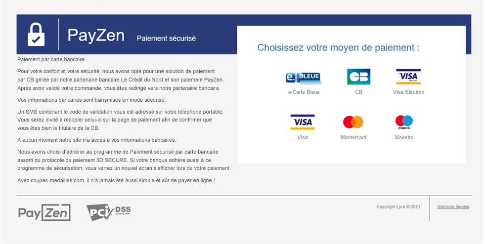 Après validation de votre commande, vous recevez nos coordonnées bancaires. Indiquez votre numéro de commande lors du virement.