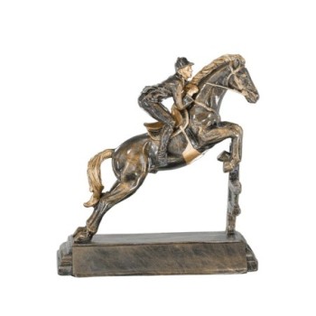 Cavalier en train de franchir un obstacle, sculpture en résine façon bronze