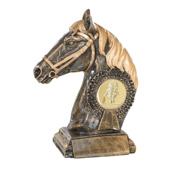 Tête de Cheval avec flot personnalisable en résine façon bronze