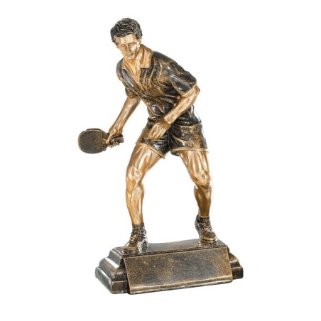 En promotion : Pongiste en action sur socle rectangulaire, Sculpture en résine façon bronze