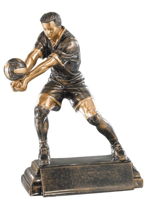 Volleyeur en train de réceptionner le ballon, Sculpture en résine façon bronze