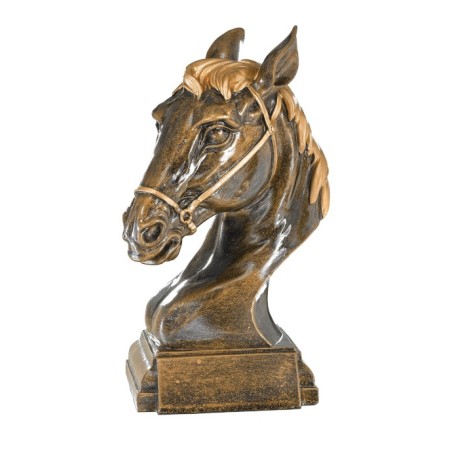 Grande Sculpture en résine représentant une tête de Cheval sur socle rectangulaire, finition bronze