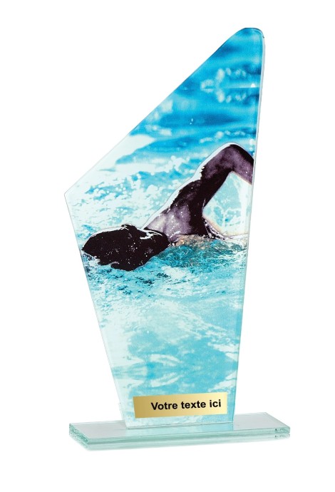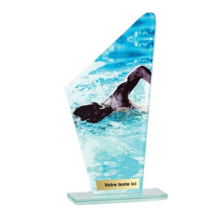 Trophée en Verre imprimée collé sur un socle en Verre Jade transparent
