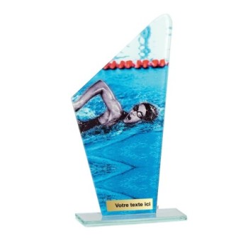 Trophée en Verre imprimée collé sur un socle en Verre Jade transparent