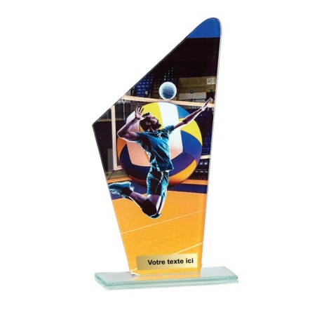 Trophée en Verre imprimée collé sur un socle en Verre Jade transparent