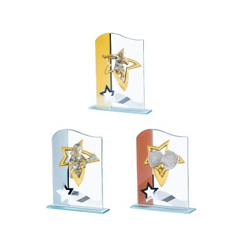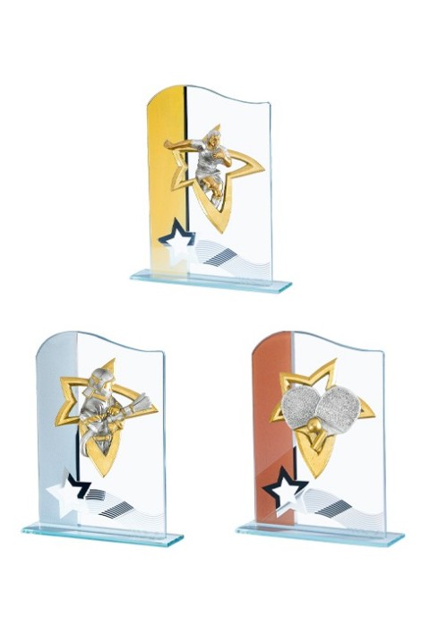 ✓ Matière du trophée : Verre avec partie dorée, argentée ou bronze + lignes argentées
